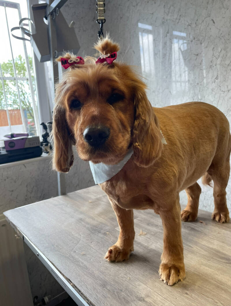 Here are some pictures from my experience at the training academy. I got lots of experience working on different stages and full grooms of various different breeds dogs.